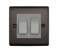 BG Nexus Black Nickel 2-Gang Light Switch 1x 2-Way + 1x Intermediate - Grey Inserts