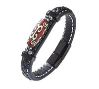 HUIANGLIYG Tibetan Nine Eyed Dzi Bead Agate Bracelet for Men Women Handmade Braided Leather Wristband Amulet with Magnetic Clasp Vintage Ethnic fortune Charm Bracelets Three Eyes Black 19Cm