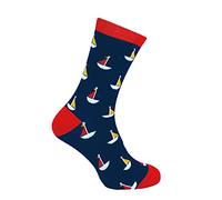 Mr Heron - Mens Bamboo Socks | Novelty Funky Socks | Patterned Argyle Striped Socks | Breathable Soft | Gifts for Him (6-11, Zig Zags (Red))