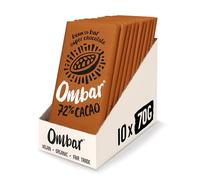Vegan Chocolate - Ombar 72% Cacao Dark Chocolate (70g x 10 Bars) Organic, Fair Trade, Dairy Free and Gluten Free Chocolate