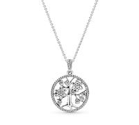 Pandora Moments Women's Sterling Silver Family Tree Hearts Cubic Zirconia Pendant Necklace, 80cm, No Box