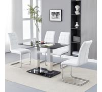 jet small black glass dining table with 4 paris white chairs