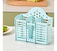 Plastic Wall Mounted Cutlery Holder Hollow DRAINING Basket Kitchen Organizer (Blue)