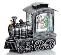 Christmas LED Rustic Silver Water Spinner Glitter Train Lantern with Snowman 18cm Long