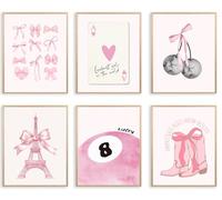 Trendy Coquette Pink Wall Decor,Preppy Pink Wall Art Prints of 6,Coquette Room Decor Aesthetic Posters for Room,Funky Heart Ace A Poker Bow Pictures Wall Decor for Teen Girls,Unframed,8x10inch