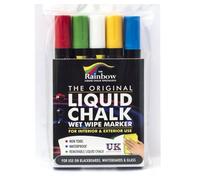 Glass Pen Rainbow Chalk Markers 15mm Large 5 Pack Assorted For Writing on WINDOWS GLASS MIRRORS WINDSCREENS DISPLAYS Wet Wipe Erasable Water Based Rain Proof