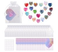 FICOFISE Pack of 20 Heart Gemstones for Children Set: Lucky Stones for Children Adults, Healing Stones with Organza Bag, Card Adhesive Dots, for Meditation Reiki Chakra Energy Balancing Decoration DIY