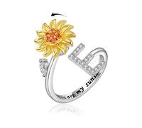 VYYU Fidget Ring with Beautiful Sunflower & Initial Letter ABC to XYZ - You are My Sunshine Anxiety Relief Stress Open Rings | Reliever Spinner Stress Relief Sunflower Gifts for Women Wife Daughter, E
