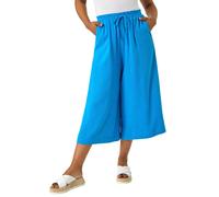 Roman Petite Linen Mix Wide Cropped Trousers for Women UK Ladies Spring Everyday Summer Break Elasticated Waist Comfy Pocket Detail Soft Lightweight Pants Vacation Culottes - Plain Navy - Size 18