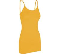 Pure Look Women's Spaghetti Strap Stretch Cotton Long Cami Camisole Tank Top, Mustard, Medium