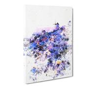 Big Box Art The Oia Santorini Skyline in Greece Watercolour Canvas Wall Art Print Ready to Hang Picture, 76 x 50 cm (30 x 20 Inch), White, Blue, Blue, Lavender, Purple