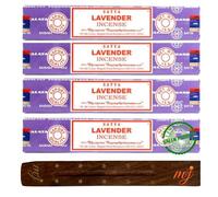 Original Satya Nag Champa Lavender Incense Sticks | with M&J incense sticks holder | x4 pack | for Aromatherapy, Spa, Yoga, Weddings, Meditation, Healing, Positivity and Relaxation