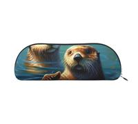 ANABPRMA Sea Otters Painting Leather Pencil Pouch Cylindrical Pen Case for School Office Supplies with Zipper Closure Portable Bag