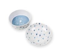 Blue Hearts Melamine Plastic Pet Saucer & Small Bowl Set - Cat Feeding Gift