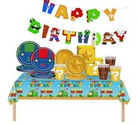 Decorations Mar-io Birthday Party Decoration, 35PCS Kids Cartoon Balloons Kit with Latex Balloon Banner Cake Topper Deco Super Brother Party Supplies for Boys Girls Birthday Theme Decoration