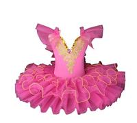 Zeiayuas Ballet Leotard for Girls Kids Short Sleeve Lace Sequined Embroidered Tulle Cami Dresses Tutu Skirt Ballerina Dance Swan Lake Costume 0-12 Years Yellow