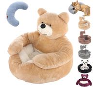 Teddy Bear Cat Bed, Teddy Bear Dog Bed With Arms, Washable Cute Pets Sofa, Winter Plush Cushion Pets (Beige,M)