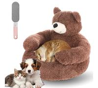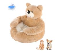 Teddy Bear Dog Bed with Arms, Warm Non-Slip Plush Cuddle Bear Pet Bed, Cute Soft Semi-Enclosed Pet Sofa with Detachable Washable Cover for Cats and Small Dogs