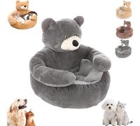 Teddy Bear Dog Bed with Arms - Cute Hug Plush Sofa for Small Dogs and Cats, Cozy Washable Cuddler with Anti-Slip Base for Indoor Pets (Bear-Gray,M:<3 Kg)