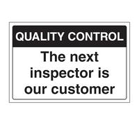 V Safety Quality Control - The Next Inspector Is Our Customer 300 x 200 mm - 2mm Super-Tough Rigid Plastic Safety Sign