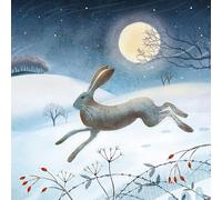 Museums & Galleries Charity Christmas Cards Pack of 8 - Leaping Hare in Snowy Woodland - Eco-Friendly & Recyclable
