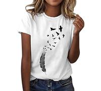 Angxiwan Warehouse Deals Clearance Tops for Women UK Clearance Fashion Daisy Butterfly Print Short Sleeve Basic Shirts Casual Loose Fit Blouse Summer Crewneck Today Deals of The Day.