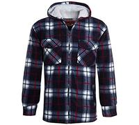 Pretty T Things Men's Fleece Sherpa Fur Lined Lumberjack Check Hoodie Fur Check Shirt Top Zipper Coats UK Size S-3XL (BLACKERED HM, 3XL)