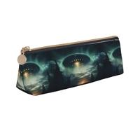 BWPDPXFJ UFO at Night -Print Triangular Leather Pencil Case - Eco-Friendly Crossgrain Organizer W/Premium Zipper for School, Office & Travel
