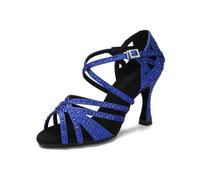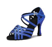 OWEIEYEU Women Latin Dance Shoes Tango Rumba Ballroom Rhinestones Sandals Rhinestones Wedding Party Heels Blue 8cm heel 8