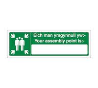 V Safety Welsh/English - Your Assembly Point Is With Blank - Landscape 300 x 100 mm - 2mm Super-Tough Rigid Plastic Safety Sign