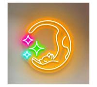 XENITE Hanging Art Neon Signs Moon Star Cat Neon Sign Cute Kids Room Decor Pet Themed Spaces,Pet Lover Bedroom Decorative Lamps 45cm(C)