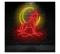 XENITE Hanging Art Neon Signs Wolf and Moon Neon Sign Animal Wall Art Decor Dimmable for House Party Room Bar Decorative Lamps 50cm