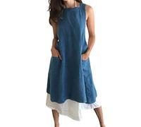 Amlztr Women's Pinafore Apron Cross Back Apron with Pockets Cotton Linen Apron Dress Plus Size, Denim Blue, Small