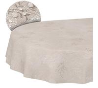 Washable Cotton Polyester Tablecloth Plain Ornament Damask Jacquard Fabric Washable Dark Grey Oval 180 x 140 cm Cut Edge - Price Information