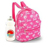 Barbie 4 Piece School Bag Set - Girls Backpack, Lunch Bag, Water Bottle & Pencil Case - Official Merchandise - Pink