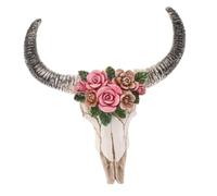 KAILIKETIY Vintage Resin Cow Skull Wall Decor with Roses Unique Farmhouse Animal Head Hanging Ornament for Living Dining Area Captivating Artistic Design Versatile Home Decoration