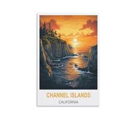 NHGEQAA Channel Islands California Vintage Travel Poster 24x36inch(60x90cm) Canvas Wall Art Print Picture