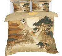 FIEMAR Chinese Landscape Painting Boys Super King Size Duvet Cover Set Ancient Chinese Imperial Palace Quilt Cover Ancient Pine Mountain Sun Crane Girls Bed Set Teen Bedding Sets for Girls