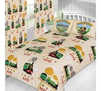 LITTLE FLYING SCOTSMAN DOUBLE BED DUVET COVER SET CREAM GREEN TRAIN LNER 4472 - Price Information