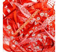 20 x 1 Metre Ribbon Off Cut Bundle, Premier Quality, Organza, Grosgrain, Double Sided Satin, Metallic Edge & Printed etc. (Red Shade)