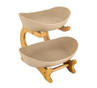 Repomanda 2-Tier PP Fruit Bowl with Bamboo Stand - Large Kitchen Countertop Organizer for Fruits, Vegetables, Snacks & Bread - Yuanbao-Shaped, Anti-Slip ( White/ Beige ) (Beige)