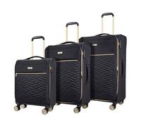 Rock Sloane Set of 3 Expandable Soft Shell Suitcases in Black - Signature London Styling, 360 Swivel-Wheels, Telescopic Handle, Stylish Gold Accents & TSA Combination Lock - Small, Medium & Large