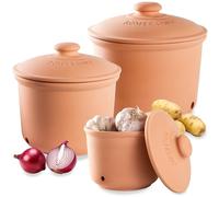 Römertopf Freshness Storage Potato Onion Garlic Clay Pot Set of 3 with Lids - Terracotta