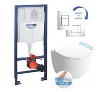 Toilet Set Support frame + Sento RIM-EX Compact bowl (rimless) + chrome flush plate (GROHE-SentoRimlessCOMPACT)