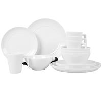 Xtremeauto 16pc Dinner Set Plates and Bowls Set - Dinnerware Sets Melamine Bowl, Plate & Mugs Crockery Plate Set Dining Tableware Dishes, Dishwasher Safe Set Caravan (Seramika Vanilla 16pc Set)