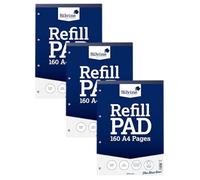 Silvine 160 Page A4 Refill Pad, Head Bound and Punched 4 Holes. Ruled 5mm Squares. Ref A4RPX, White (Pack of 3)