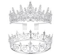 VELSCRUN 2 Pcs Tiara Crown for Men Women, Silver Crowns for Men Metal, King Queen Crown Tiaras, Prince Crown Princess Tiaras for Girls, Birthday Prom Wedding Halloween Party Hair Accessories B