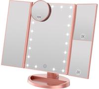 - The price range for the product WEILY Makeup Vanity Mirror with LED Lighting and Touch Screen, Tri-Fold 1x 2x 3x Magnification,180° Adjustable Rotation,Battery and USB Powered,Countertop Cosmetic Mirror (White) is €£27.99to €£29.20 with a total of 2 offers.